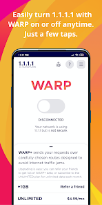 1.1.1.1 + WARP mang đến cho người dùng trải nghiệm internet không giới hạn hoàn toàn mới thông qua DNS. Tính ổn định của việc truy cập vào một trang web nhất định phụ thuộc vào DNS, vì vậy để khắc phục những rào cản này, bạn có thể an toàn sử dụng DNS được cung cấp bởi máy chủ Cloudflare uy tín. Do đó, bạn có thể cảm thấy an toàn khi sử dụng ứng dụng này và có tốc độ lướt web nhanh chóng vì quá trình bật hoặc tắt tính năng chỉ mất vài giây ngắn ngủi. Điều này đáp ứng sự tiện lợi trong quá trình sử dụng và mang lại trải nghiệm thoải mái cho người dùng.