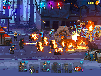 Các nguồn tài nguyên trong Dead Ahead: Zombie Warfare sẽ gây ấn tượng với bạn bởi tên gọi đặc trưng của chúng: lòng dũng cảm và cơn thịnh nộ, và mỗi loại sẽ giúp triệu hồi những chiến binh mạnh mẽ để tiêu diệt zombie. Lòng dũng cảm là một yếu tố quan trọng thường gắn liền với con người, giúp họ chiến đấu chống lại những tình huống khó khăn, vì vậy đây sẽ là nguồn tài nguyên giúp bạn tăng số lượng chiến binh trên chiến trường. Cơn thịnh nộ thường bao gồm các vũ khí hỗ trợ chỉ được sử dụng một lần; ví dụ, bạn có thể thấy một chiếc trống màu xanh rơi từ trên cao xuống để hạ gục bất kỳ con zombie nào. Đây cũng là một cơ chế khá thú vị, và bạn sẽ tò mò liệu có cơ chế nào tương tự khác hay không.